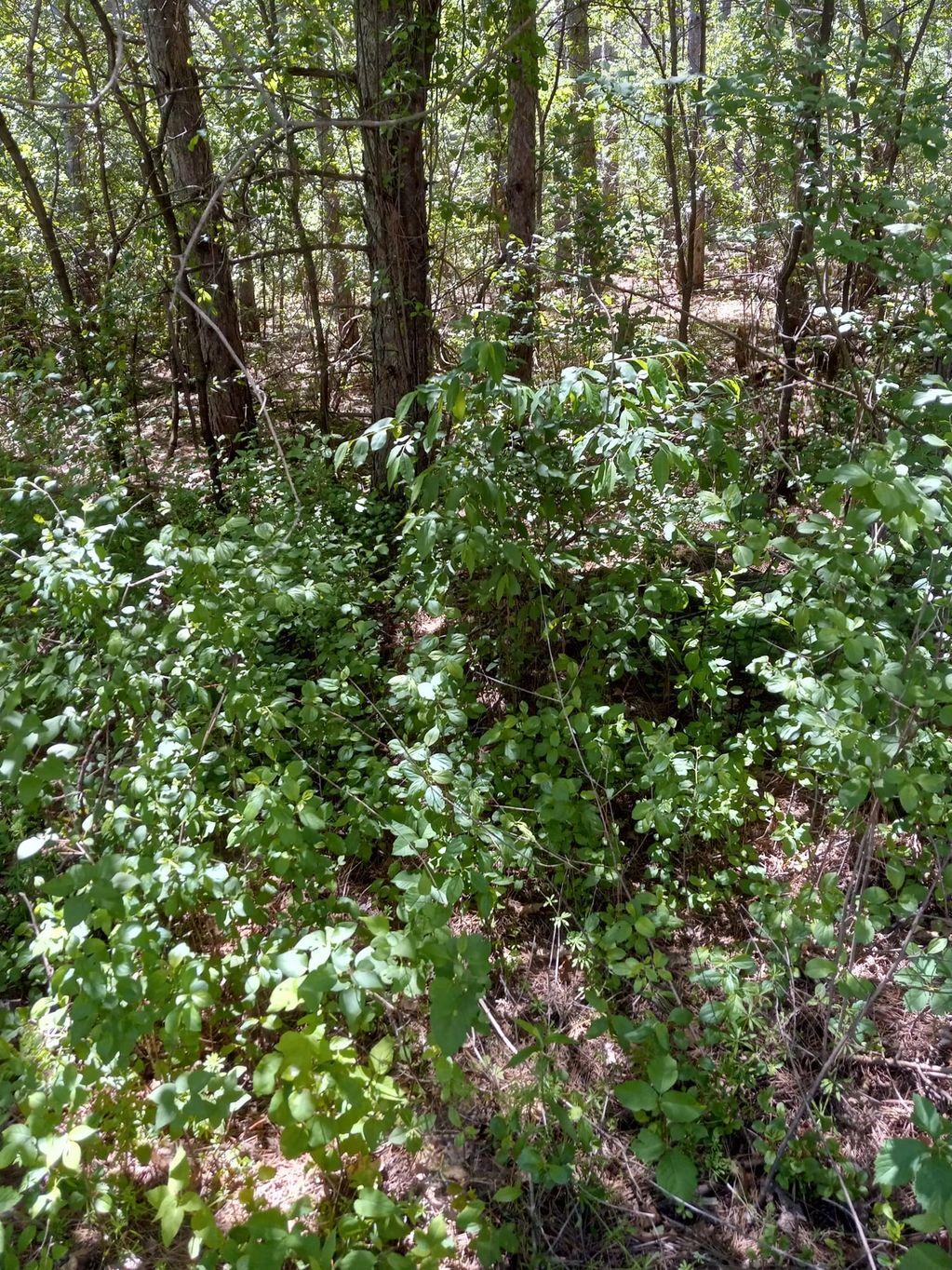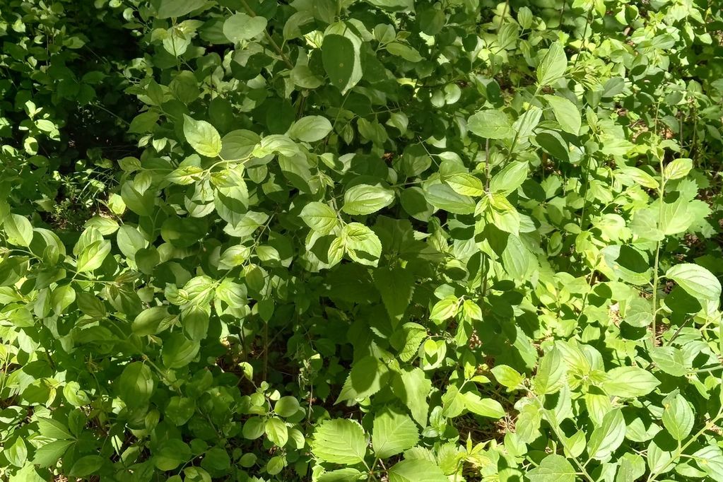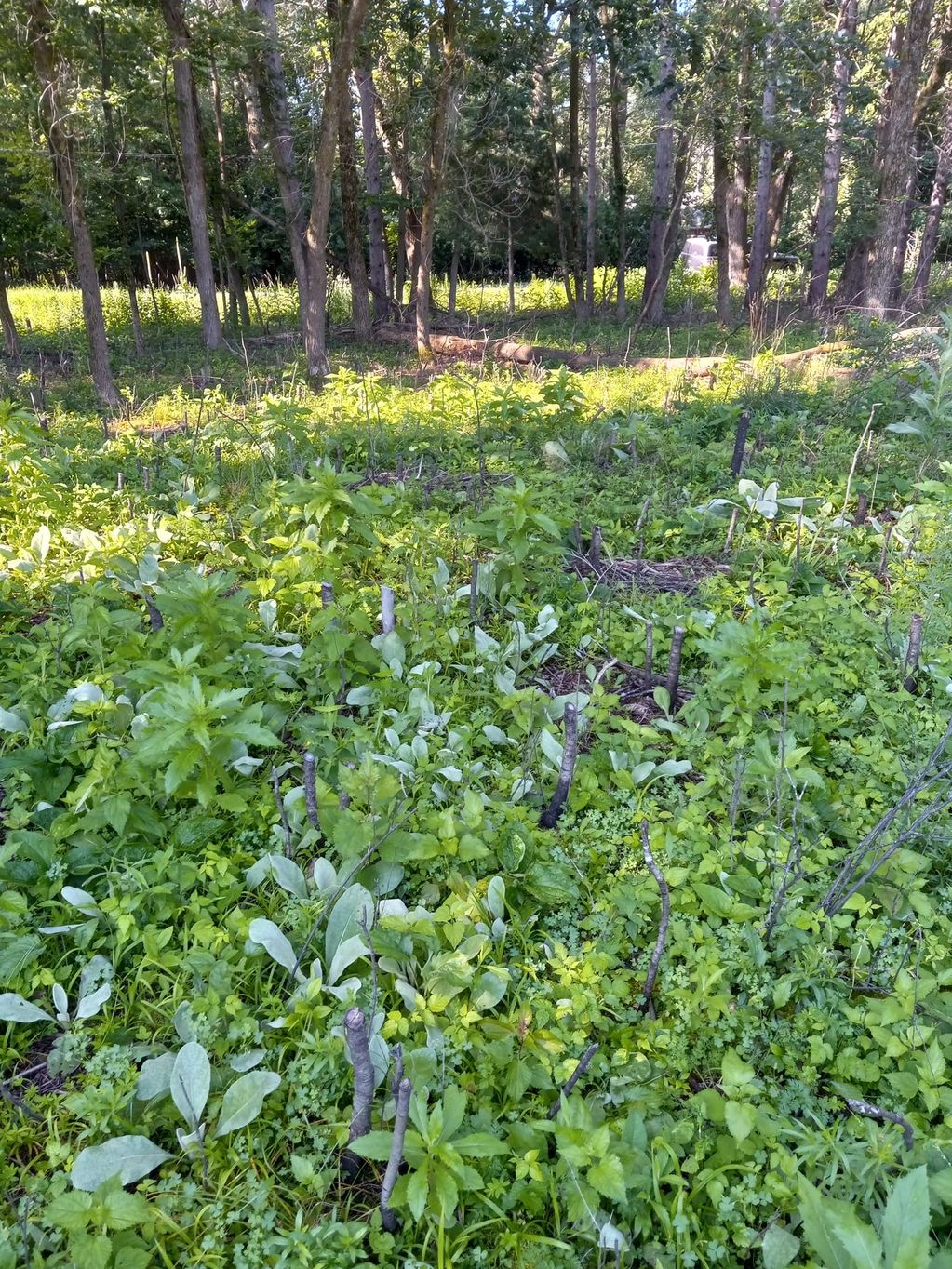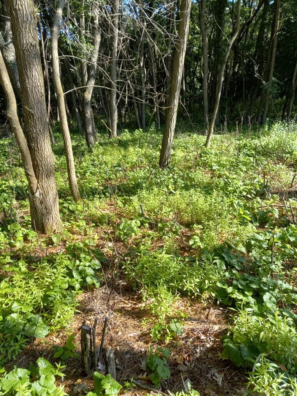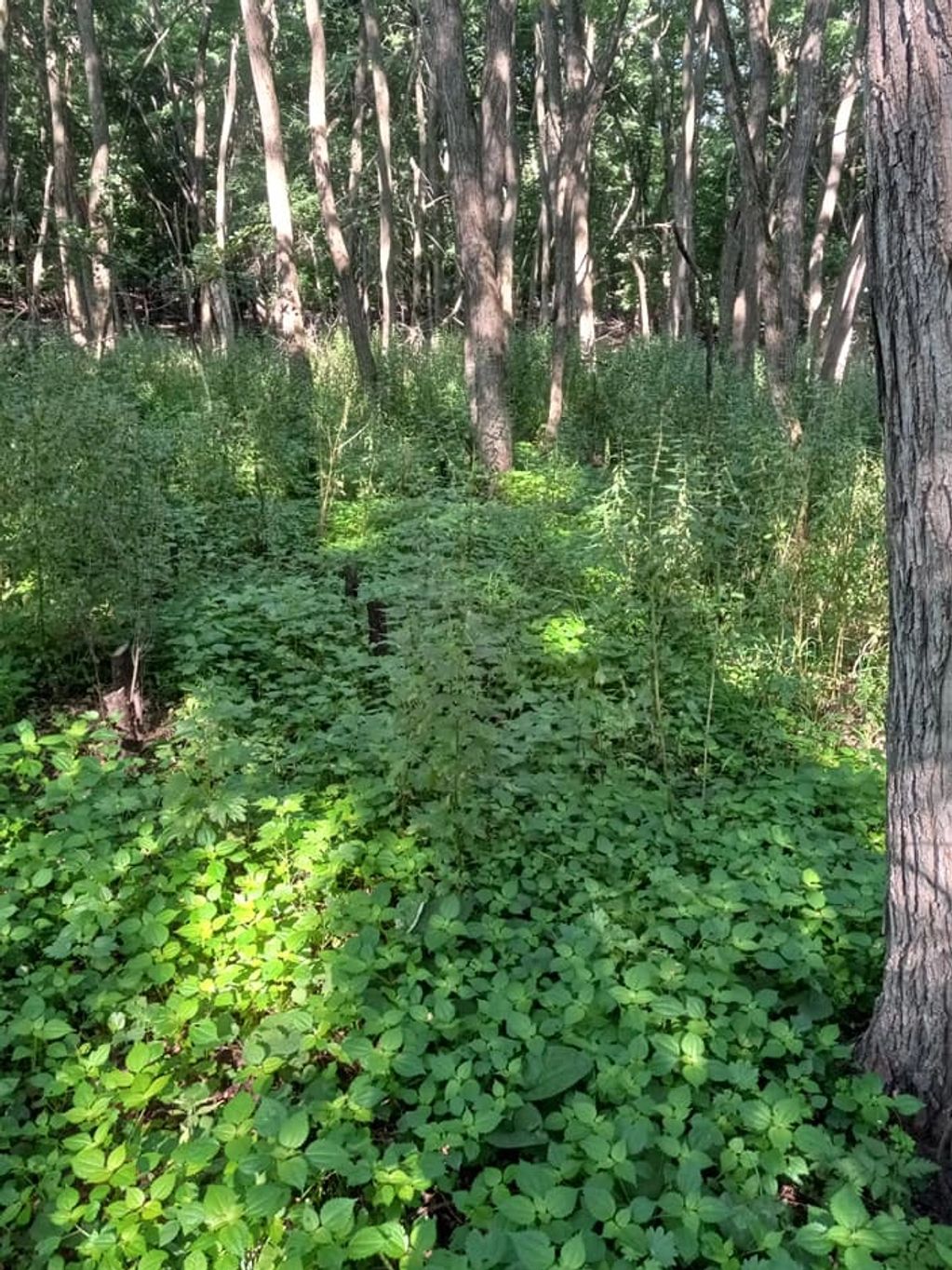 Forest regrowth after 1 year of eliminating large buckthorn and medium saplings.